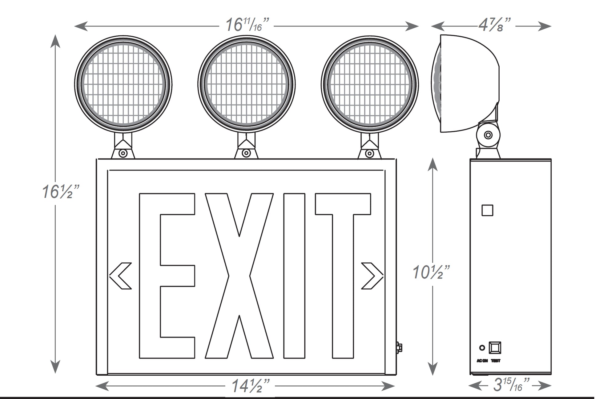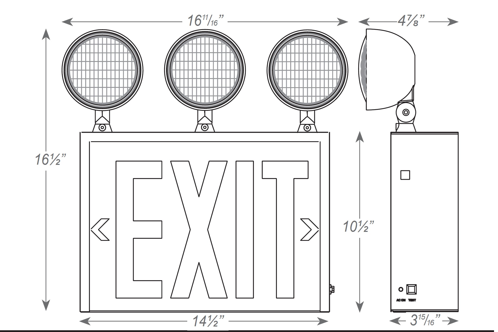 NYC-Approved LED Exit & Emergency Combo - 8" Red Letters, 2 × 12 W Heads, 12 W Remote, Steel Cabinet - Features & Specs