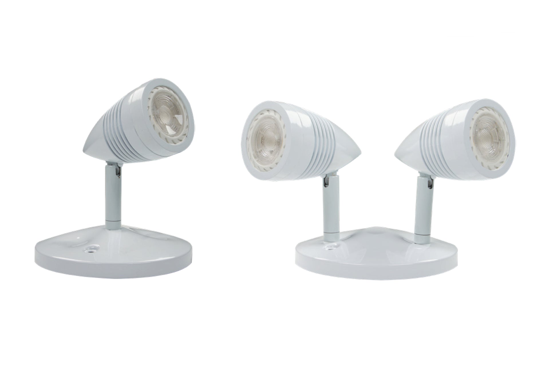 - MR16 LED lamps: 2 W, 5 W, 7 W per head; wide throw for long-corridor coverage.